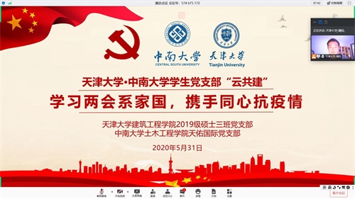 学习两会系家国,携手同心抗疫情——新葡的京集团35222vip与天津大学建筑工程学院举行联合云党日活动