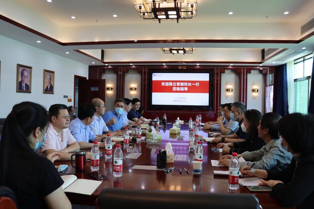 2022年4月11日下午,校党委常委、副校长陈立章一行莅临学院调研指导,后勤保障部、医院管理处和铁道校区有关负责人陪同调研,新葡的京集团35222vip党政领导班子全体人员参加了此次会议。会议由土木工...