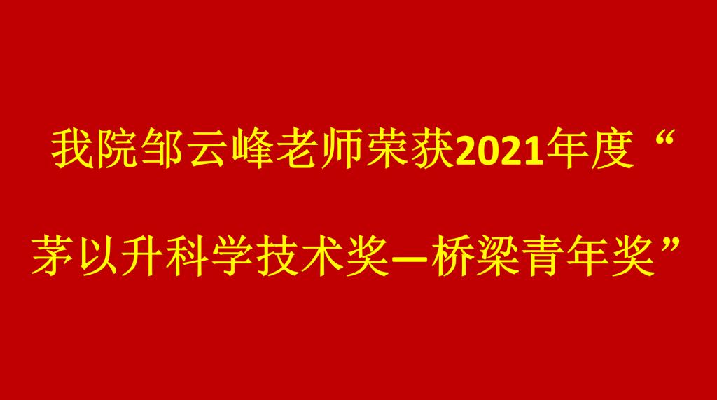 喜报!集团邹云峰老师荣获2021年度“茅以升科学技术奖—桥梁青年奖”