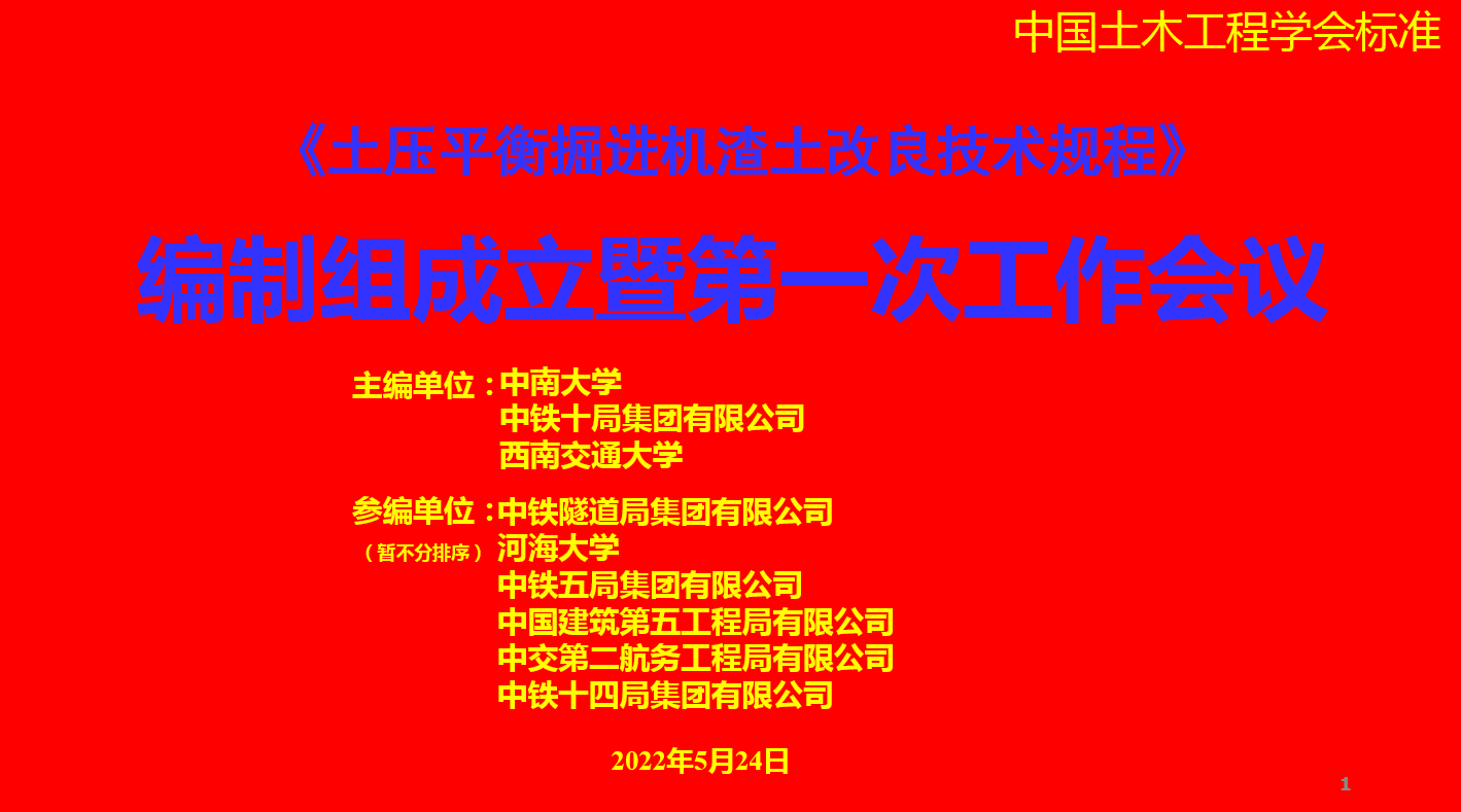 2022年5月24日,集团作为第一主编单位会同有关单位采用线上会议的形式召开了中国土木工程学会标准《土压平衡掘进机渣土改良技术规程》编制组成立暨第一次工作会议。参会嘉宾包括中国土木...