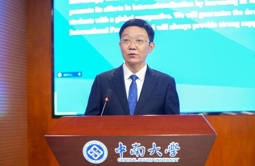 集团副校长黎志宏对Yiannis Ventikos院长一行来校出席开学典礼表示欢迎,并总结了近年来我校中外合作办学项目的办学特色和成功经验,对学校国际化工作提出了展望,对中外合作办学项目全体学生提出了要求,希望同学们珍惜大学美好时光,以合作办学项目为平台,努力学习,奋发有为,以国际视野观国际,用世界眼光看世界,让世界领略中南力量,唱响“中南最强音”。