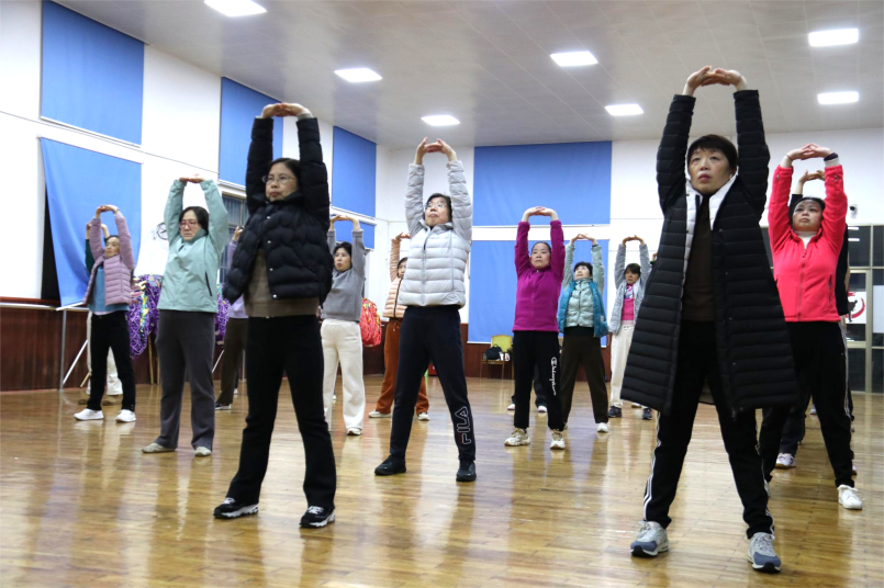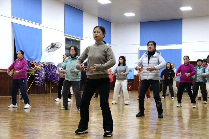 伴随着悠扬的古琴音乐,教练首先讲解了八段锦“调理脏腑、疏通经络”的养生原理,并针对教职工长期伏案工作、肩颈腰椎易疲劳的特点,特别设计了分段式教学环节,逐一对“双手托天理三焦”“左右开弓似射雕”等动作进行分解示范。体操房内气氛热烈而温馨,在专业教练的指导下,参与活动的教职工们认真学习每一个动作,仔细体会八段锦的精髓。