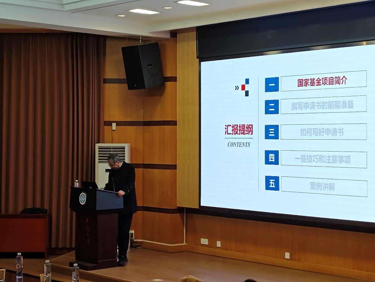 余志武教授以《国家自然科学基金申请经验交流》为题,详细介绍了国家自然科学基金的申请流程、评审标准及撰写申请书的技巧。他首先从国家自然科学基金的背景和重要性入手,强调了基金在推动基础研究和科技创新中的关键作用。随后,他结合自身多年的申请和评审经验,深入剖析了申请书的撰写要点,包括选题的确定、立项依据的撰写、研究内容的分解、关键科学问题的提炼等。他还特别指出,申请书的撰写不仅要注重科学性和创新性,还要注意逻辑性和可读性,确保评审专家能够清晰理解申请人的研究思路和预期成果。