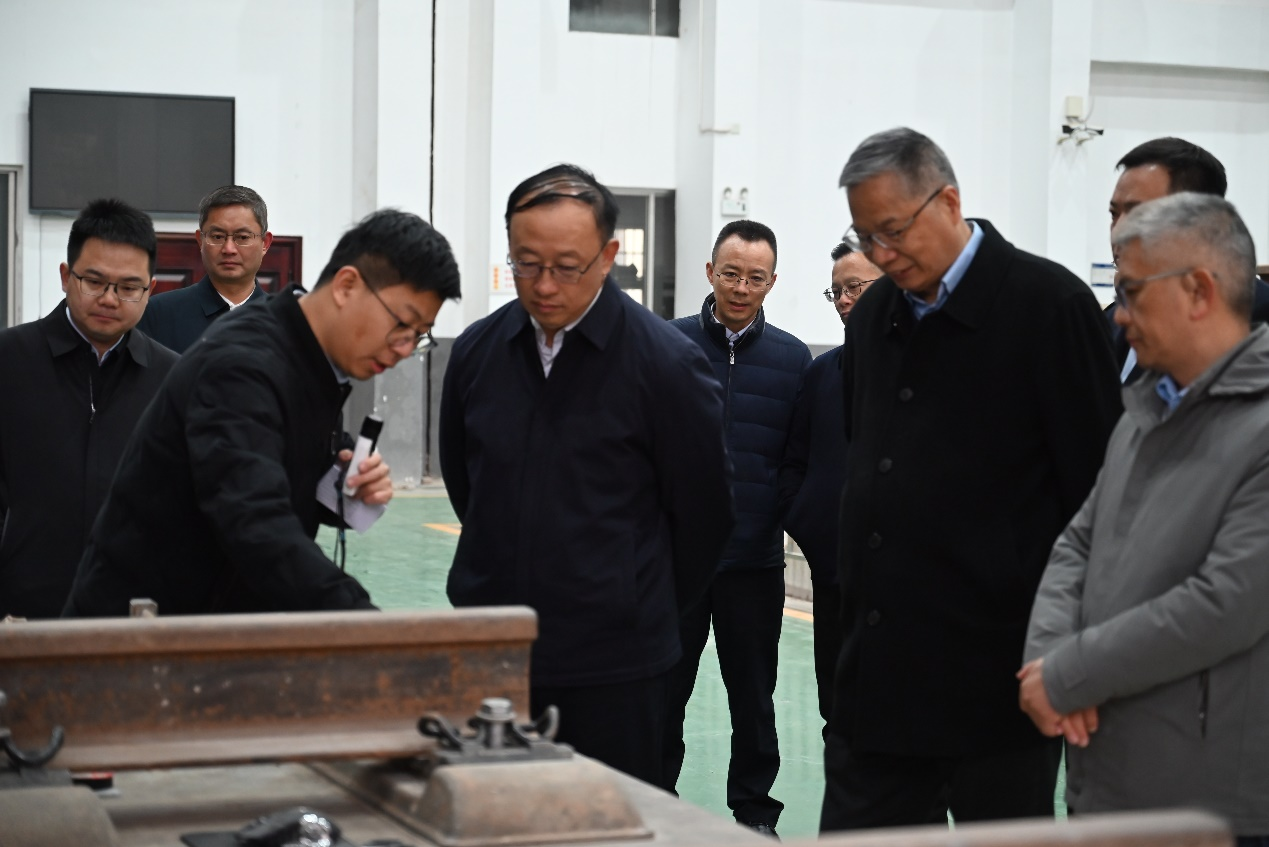 3月4日,徐坤甲一行先后参观了高铁工程中心实验平台、技术成果展览馆和高铁科技(湖南)有限公司,了解科研平台运行、成果转化、产业化推进情况。参观过程中,徐坤甲对中心在技术研发方面取得的阶段性成果给予充分肯定,针对当前面临的发展难题与团队成员进行深入交流,提出了针对性的指导意见。