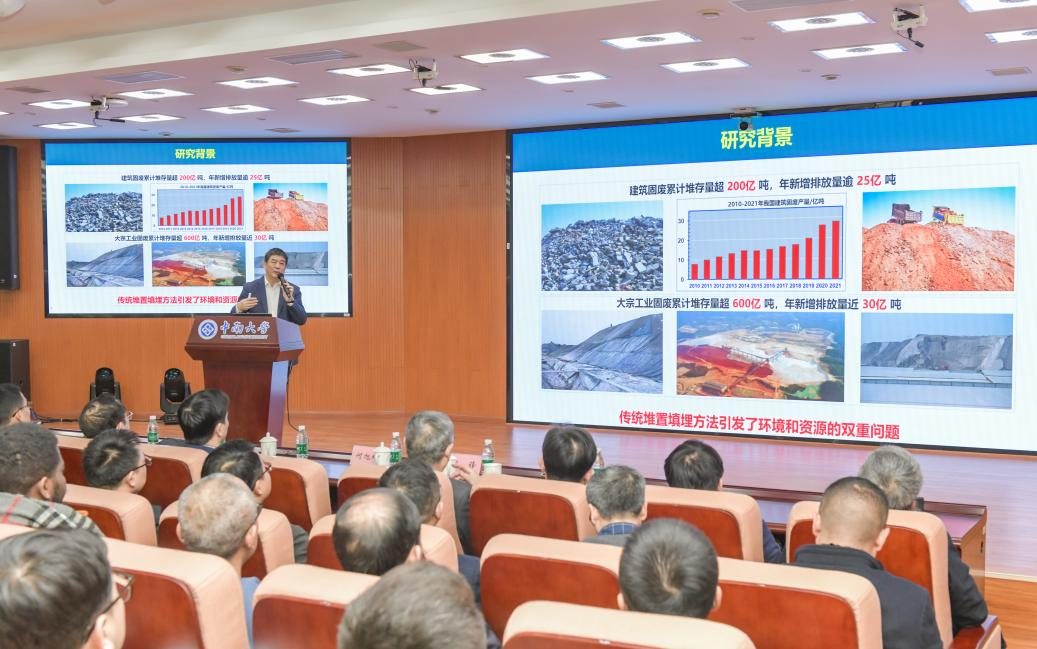 在提问环节,现场师生踊跃交流。针对“火灾后混凝土石料能否二次利用”的疑问,邢院士坦言高温可能破坏材料内部结构,但具体影响需进一步实验验证,展现了科学家的严谨态度;对于磷石膏资源化问题,他结合跨领域经验提出杂质分离与胶凝活化等研究方向;针对地下盾构工程废料处理难题,他建议根据岩土特性设计分类再生方案,推动废料就地资源化利用。