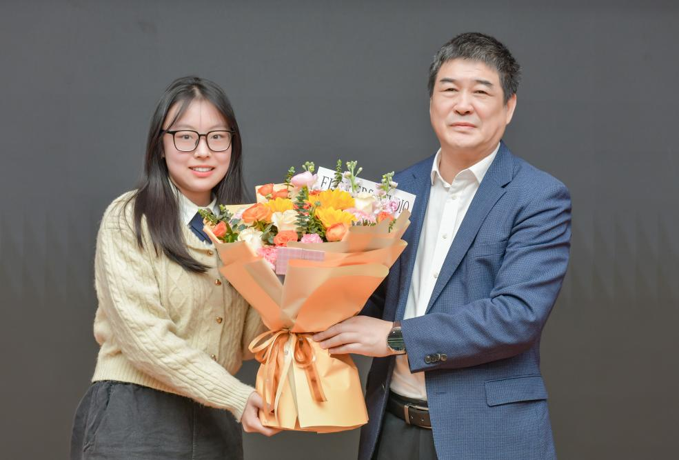 邢院士强调,固废资源化需构建“基础研究—技术开发—产业落地”的全链条体系,并鼓励青年学者立足国家“双碳”战略,探索低碳胶凝材料、智能再生技术等前沿方向,同学们纷纷表示,邢院士的分享兼具理论深度与实践价值,为固废领域的科研创新提供了重要启发,学生代表上台向邢院士献花表示感谢。