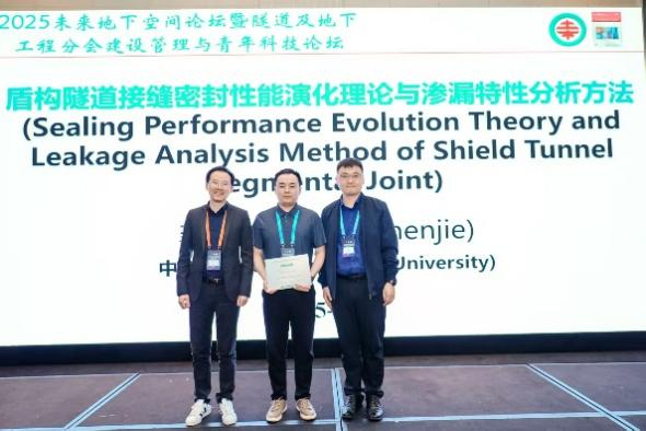 会议期间,集团参会教师在2025未来地下空间论坛不同会场进行了多场学术汇报。其中,论坛组织委员会共同主席雷明锋教授作了题为“钻爆法隧道高效智能爆破控制技术与系统”的特邀报告,论坛组织委员会共同副主席傅金阳教授作了题为“小断面隧洞全景图像快速采集与病害识别技术”报告,论坛组织委员会委员龚琛杰副教授作了题为“Sealing Performance Evolution Theory and Leakage Analysis Method of Shield Tunnel Segmental Joint”的英文学术报告。