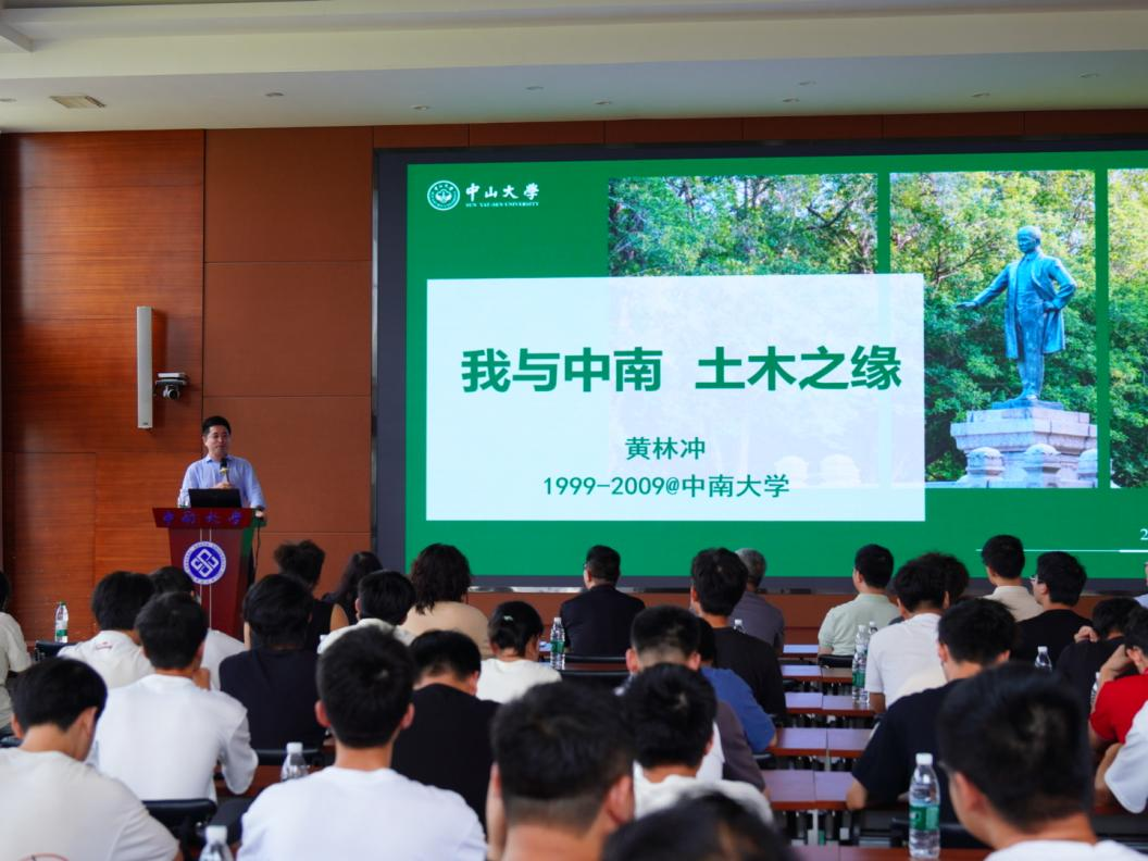 黄教授以自身成长经历为切入点,深情回忆了在集团的求学时光。从一名中南学子成长为我国隧道工程与防灾减灾领域的专家,黄教授用“心怀使命,刻苦奋进”八个字概括了自己的奋斗历程。在分享专业见解时,他特别指出:“当代土木工程已从传统的单一技术领域,演变为与人工智能、材料科学等多学科高度融合的超级学科,这为同学们提供了更广阔的发展空间。”围绕“如何度过有意义的大学生活”这一主题,黄教授从三个维度进行了深入阐述:一是要培养健全人格,以家国情怀铸魂;二是要掌握科学学习方法,培养跨界思维;三是要建立健康的社交圈,在交流中共同进步。他特别强调:“在快速发展的新时代,终身学习能力比具体知识更重要。同学们要始终保持求知若渴的心态,才能适应未来的挑战。”