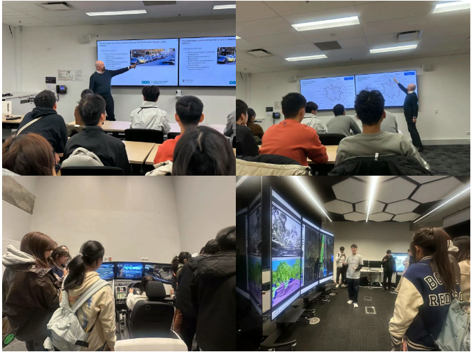 8月7日上午,交流团聆听了澳大利亚技术科学与工程院院士Graham Currie关于“墨尔本交通现状”的专题授课。Graham Currie深入剖析了城市交通所面临的挑战与解决方案,并重点介绍了自动驾驶汽车的前沿研究方向,包括传感器技术、AI算法及可持续交通系统。随后,同学们走进Nan Zheng副教授相关的项目课题组,通过现场演示、近距离接触、体验测试最新研究设备,加深了对智慧交通的理解。