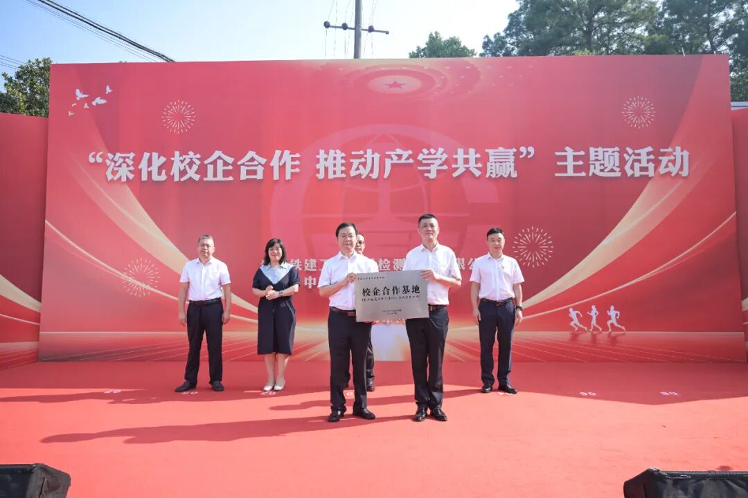 仪式上,李磊为贵州铁建授予“校企合作基地”牌匾,谭波代表贵州铁建接牌。