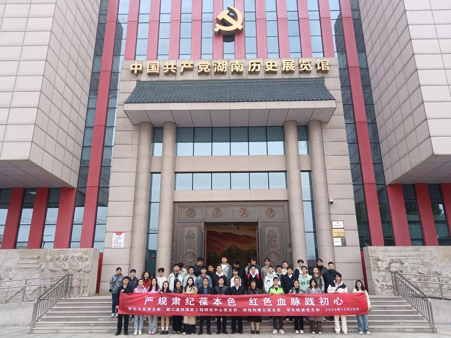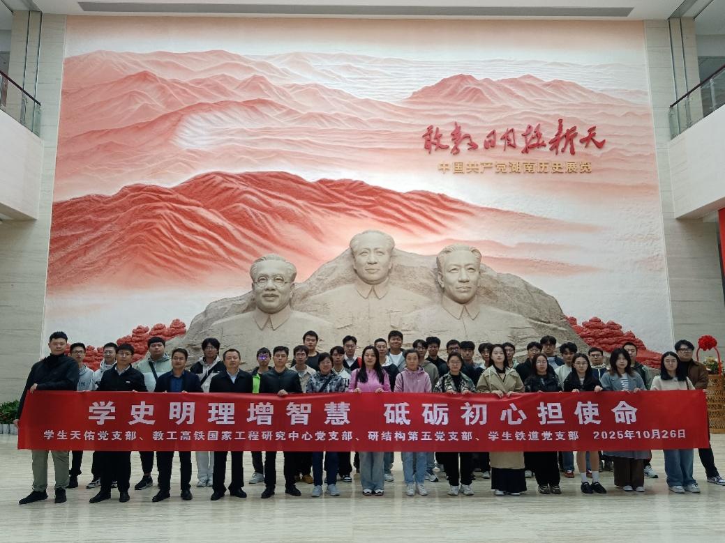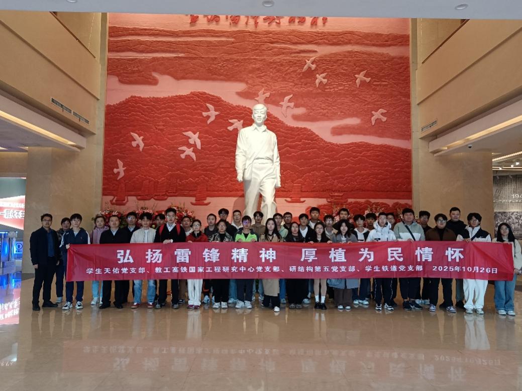 为深入学习贯彻习近平新时代中国特色社会主义思想,贯彻落实中央八项规定精神,引导党员在重温红色记忆中淬炼过硬作风、在感悟榜样精神中践行初心使命,10月26日上午,新葡的京集团35222vip学生天佑党支部、教工高铁国家工程研究中心党支部、研结构第五党支部、学生铁道党支部全体党员前往湖南雷锋纪念馆及湖南党史陈列馆,开展“严规肃纪葆本色,红色血脉践初心”主题党日活动,学院党委副书记纪晓飞参加活动。