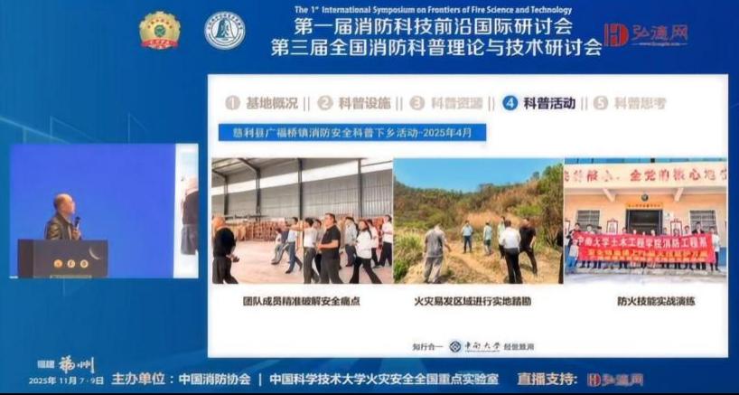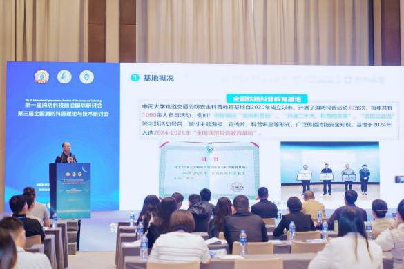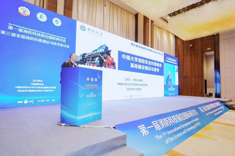 11月8日,集团消防工程系范传刚教授和颜龙副教授在福州参加第三届全国消防科普理论与技术研讨会和第一届消防科技前沿国际研讨会。本届会议的线下参会人数达500余人,各平台直播总量高达272万,创历史新高。颜龙副教授在会上作了《集团消防安全科普教育基地建设情况与思考》专题报告,引发了与会专家学者的广泛关注与热烈反响。这不仅是一次高水平的科普交流,更是对“大学何为”这一时代命题的深刻回应——如何将高校的知识优势转化为守护公众安全的社会力量,“中南方案”给出了响亮的回答。