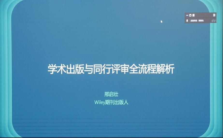 会议最后,Wiley 期刊出版人邢启壮作学术评审和同行评审全流程解析,为青年学者在学术出版方面提供了专业指导。