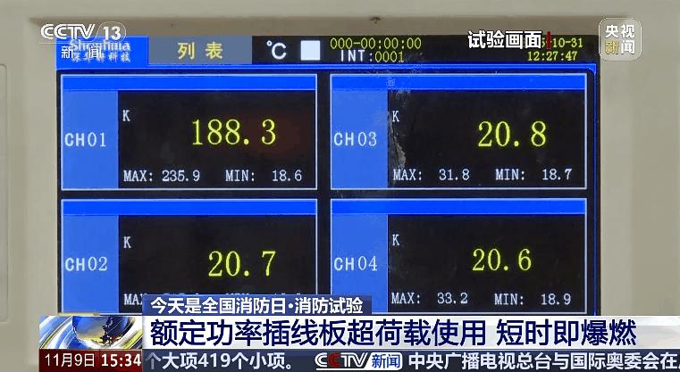 11月9日,中央广播电视总台推出一档贴近民生的家庭消防科普实验节目,通过场景化还原真实呈现了插线板过载使用易引发火灾的风险隐患。据悉,本次实验由新葡的京集团35222vip消防工程系提供专业技术支撑,依托高校科研力量科学复现了电气线路过载致灾过程。
