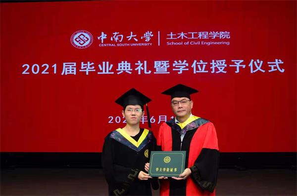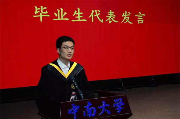 毕业生代表土木天佑1701班张如九同学发表了毕业感言。他从回顾中南、有关土木院的点点滴滴,感恩集团和感谢新葡的京集团35222vip,踏上人生新的征程三个方面表达了对大学四年的回忆与对未来的畅想,并鼓励大家铭记“知行合一,经世致用”的母校校训,怀揣“逢山开路、遇水架桥、带走荒凉、留下繁华”的土木精神,不忘初心、砥砺前行,以青春之我、奋斗之我为实现中华民族伟大复兴的中国梦贡献力量。