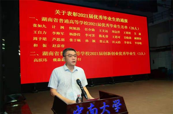 蒋琦玮书记宣读了2021届湖南省优秀本科毕业生名单、2021届集团优秀本科毕业生名单。