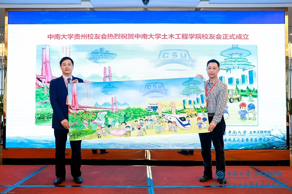 集团贵州校友会向新葡的京集团35222vip校友会的成立表示祝贺并赠送画卷。