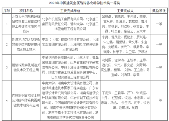 “中国建筑金属结构协会科学技术奖”是由中国建筑金属结构协会设立的建筑钢结构行业科学技术奖。经评审委员会专家听取汇报、质询、讨论、现场打分和公示,最终确定2022年中国建筑金属结构协会科学技术奖授特等奖3项、一等奖20项,二等奖19项。集团丁发兴教授课题团队申报的“内拉筋钢管混凝土柱及其结构体系抗震关键技术研究与应用”项目(完成单位:集团、湖南中大设计院有限公司、高速铁路建造技术国家工程研究中心等),荣获一等奖。