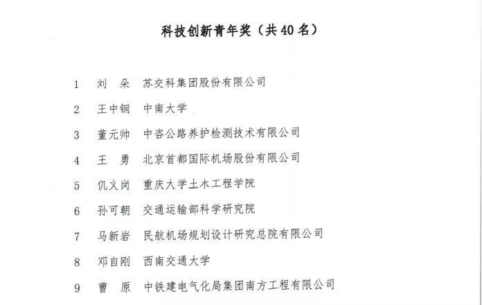 喜报!集团国巍教授喜获“中国交通运输协会科学技术奖——科技创新青年奖”