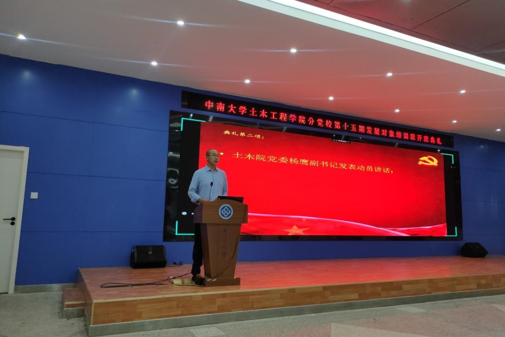 随后,杨鹰书记发表了致辞,他对培训班学员提出了三点要求:一是认真学习,牢记使命,希望大家认真利用培训时间,端正学习态度,加强党性修养。二是重视理论,实践并重,要求全体学员在学习理论知识的同时,更进一步将理论知识与自身实际相结合、将专业学习与“双一流”建设相结合,做到理论联系实际,从实践中来到实践中去。三是奉献自我,服务同学,要求学员在日常学习和生活中主动承担责任,时刻起到领头羊的作用,加强奉献意识和服务意识,做一名合格的在党爱党、在党言党、在党为党的发展对象。
