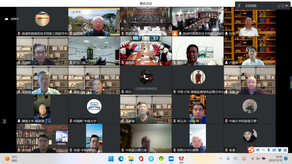 12月10日下午,高速铁路建造技术国家工程研究中心第二届技术委员会第四次会议在集团铁道校区召开。本次会议以线上线下相结合的方式进行,中国工程院院士、中国铁道学会理事长卢春房,中国工程院院士、清华大学教授聂建国,中国工程院院士、湖南大学教授陈政清,原中国国家铁路集团有限公司科技和信息化部主任赵国堂,中国中铁股份有限公司科技与信息化部部长伍军,高速铁路建造技术国家工程研究中心主任余志武及技术委员会委员、与会专家70余人出席会议,集团副校长蒋丽忠与会并发表致辞。会议由工程中心技术委员会主任卢春房主持。