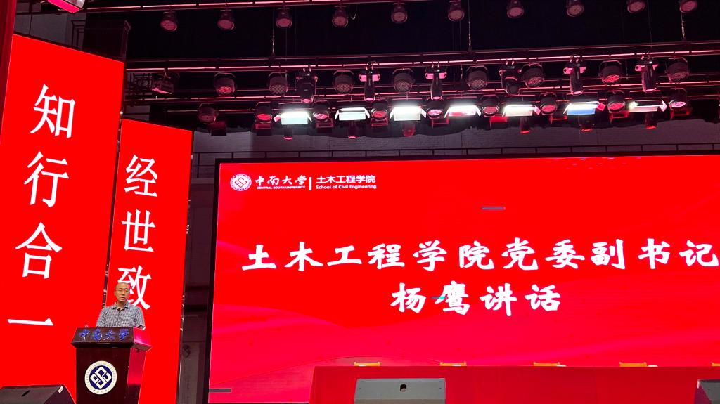 主管集团学生工作的党委副书记杨鹰老师对集团学生工作情况作了基本介绍,从德智体美劳五个方面对同学们提出要求,勉励同学们提高政治素养、提高道德标准、提高科研水平,续写中南土木人的担当,做一名志存高远、脚踏实地、全面发展的新时代青年。