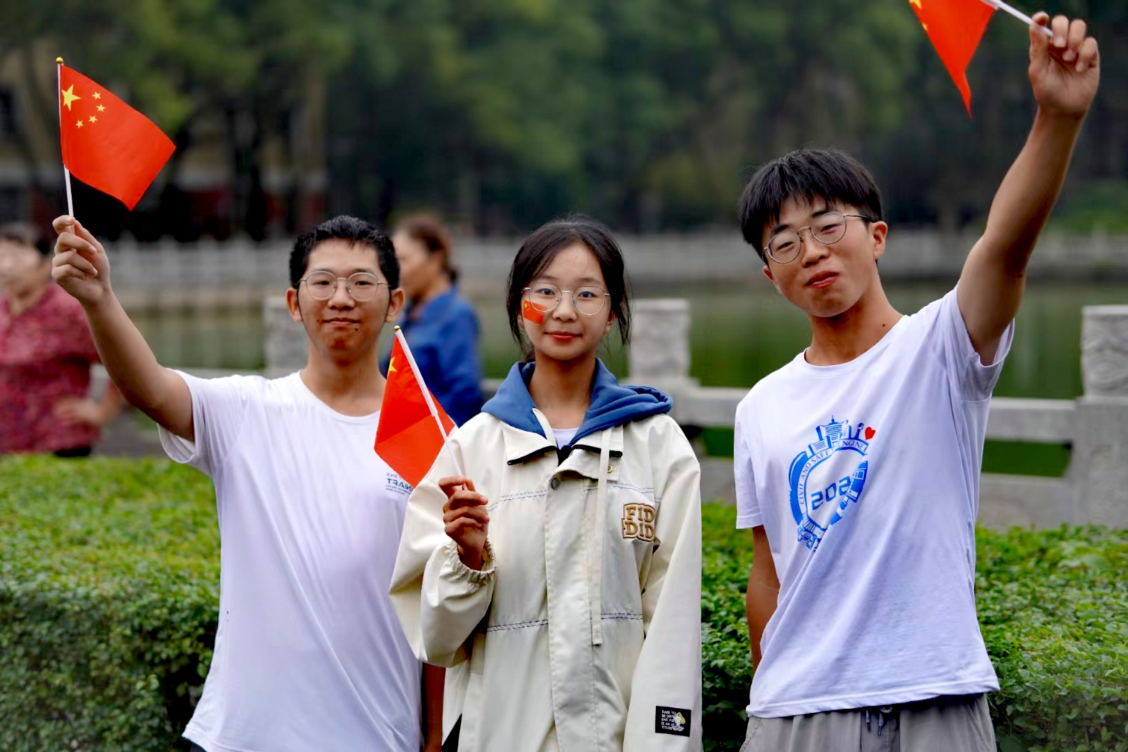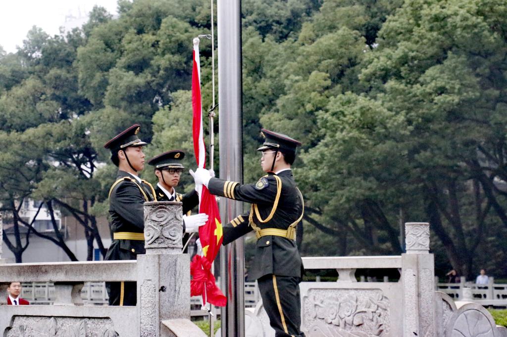 秋风送爽,旭日初升,清晨7:00,升旗仪式正式开始。国旗班仪仗队员身着挺阔军装,戴穗执枪,迈着整齐有力的正步行至旗杆前。随着《义勇军进行曲》庄严奏响,擎旗手振臂将旗帜高高抛出,鲜艳的五星红旗在熹微晨光中冉冉升起,全体师生行注目礼,齐唱国歌。新葡的京集团35222vip全体同学统一穿上文化衫,以饱满的精神面貌与澎拜的爱国热情为祖国送上衷心祝福,以“知行合一,经世致用”的校训为学校发展做出自己的贡献。两鬓斑白的老党员眼眶中饱含着骄傲的泪水,脸庞青涩的新同学扬起了自信飞扬的微笑,观此胜景,壮怀激荡,每一位师生都在此刻抒发着对祖国富强、民族进步的美好愿景。