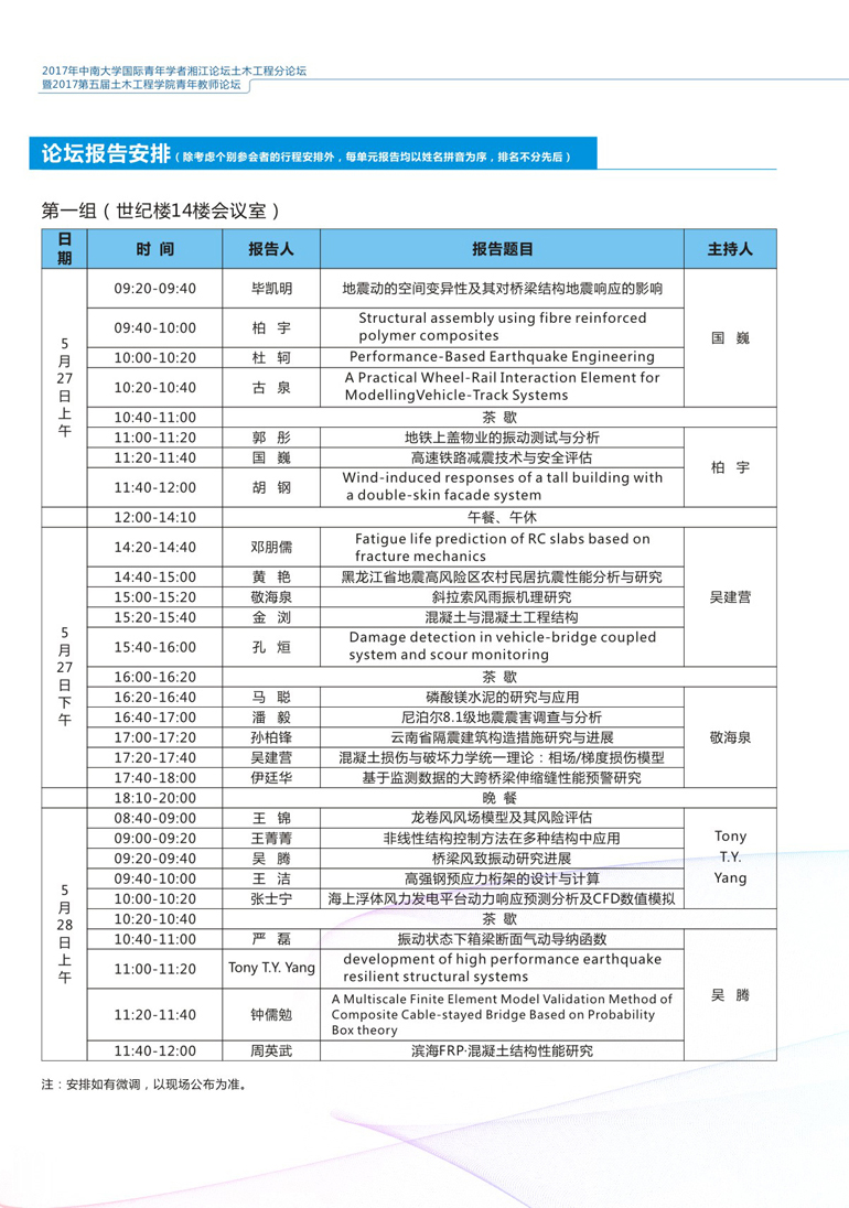 报告题目:2017年集团国际青年学者湘江论坛土木工程分论坛暨2017第五届新葡的京集团35222vip青年教师论坛