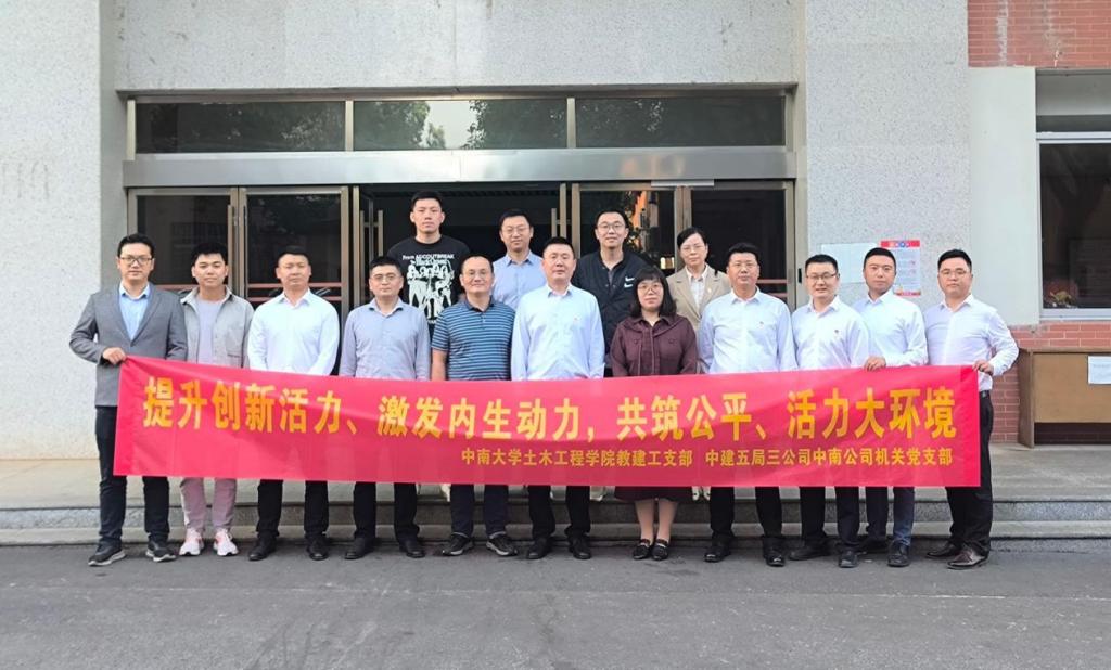 此次支部共建,以“提升创新活力、激发内生动力,共筑公平、活力大环境”为主题。在学院教授的带领下,参会人员参观了高速铁路建造技术国家工程研究中心,实地观摩了静力实验室、振动台实验室等。建工系主任龚永智对湖南省装配式研究中心成果进行了介绍;教建工党支部书记周旺保主持收看了高速铁路建造技术国家工程研究中心宣传片,介绍了研究中心在高速铁路建设领域的各项重大成果,中南公司机关第二党支部书记对企业党建典型做法做了分享,重点对“价值党建·旗舰中南”的“一点四棱五面”体系做了介绍,随后,大家还就深化校园招聘、科技研发合作、工程硕博联合培养等议题讨论交流。