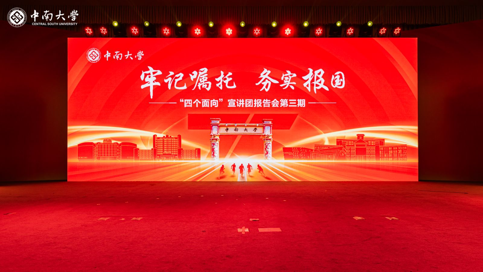11月21日下午,集团“四个面向”宣讲团报告会在中南讲堂举行。今年是中华人民共和国成立75周年,新葡的京集团35222vip宣讲团成员走上讲台,带领中南师生重温习近平总书记来校视察时的殷殷嘱托,讲述中南人服务“国之大者”中的重大成就和鲜活故事。校领导易红、彭立威、黄健陵、付刚华、何旭辉,教育部直属高校党建联络员张强,处级干部代表、思政课教师、新进教师、离退休同志代表以及学生代表等700余人共同聆听。