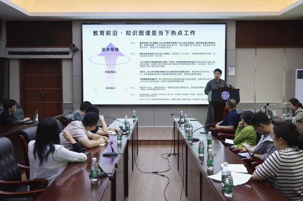 莫瑶南以“数智化背景下基于知识图谱的新形态课程建设”为题作报告,深入解读了数字化、智能化背景下全球教育服务供给模式、教育教学资源形态、导向激励政策的发展趋势,剖析了数智化课程的定义与内涵,并分别以案例的方式从学科、专业、课程等层面展示了知识图谱技术方案在课程教学和人才培养中的应用。交流环节中,学院参会教师就教育教学理念的更新、学生学习习惯的转变、课程建设和课堂教学中遇到的难点等问题与技术专家展开了热烈讨论和深入交流。