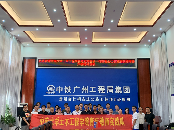 7月27日,中铁广州工程局集团的贵州金仁桐高速公路七标项目经理贺清华、总工吴光明等领导与青年教师实践团展开座谈。首先,总工介绍了桐梓河特大桥项目情况、建设进度以及规划的科研课题。随后,青年教师就自己的研究方向,针对桐梓河特大桥建设的相关工程难点及问题,与对方开展产学研讨论。此次青年教师遵义一行,建立了与贵州金仁桐高速公路和中铁广州工程局集团的产学研交流渠道。