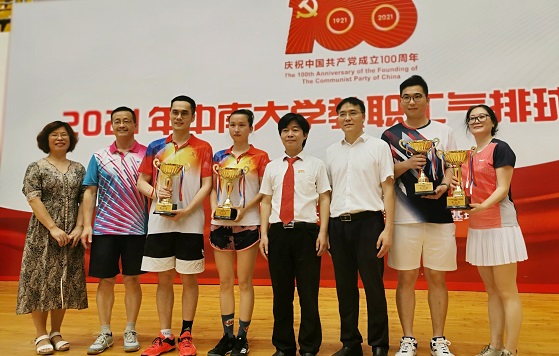 教职工气排球比赛在校工会领导的见证和强力组织下逐渐落下帷幕,集团男女排队员代表集团获颁各个奖项,队员们拼搏进取,团结奋进的精神也受到了校工会部门领导的认可、肯定和表彰。队员们纷纷表示,希望工会组织更多类似团体比赛项目,切实增强教师们利于科研生产工作之余时间充分锻炼身体,增强学院教职工凝聚力和向心力,以优异成绩庆祝中国共产党成立100周年。