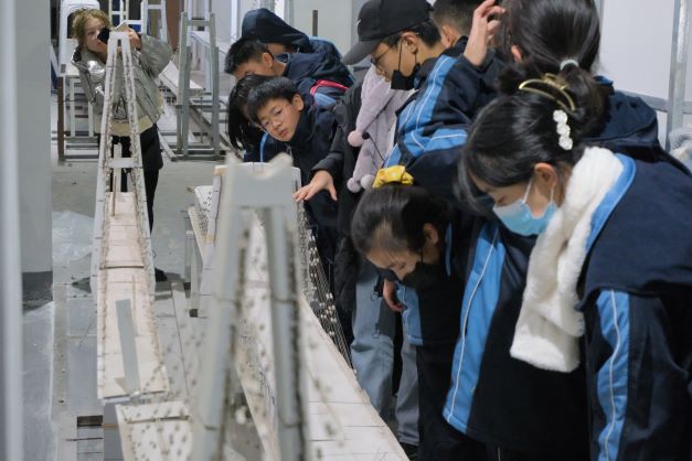 同学们被分成四个队,分别由徐彧、颜龙、申永江和王峥阳四位指导老师和王心雨、徐斌雁、甄雅星和易令泓四位队长带领。同学们首先参观了高速铁路建造技术国家工程研究中心,在振动台实验室了解了用于高速铁路、房屋、汽车和桥梁的抗震实验测试;在静力实验室了解了正在进行的箱梁静力实验;在风洞实验室,何旭辉院长亲切地为同学们介绍了风洞实验室的构造和应用,讲解了气流对于桥梁、列车的影响。同学们聚精会神的聆听,将实验室测试试验与现实生活应用联系起来,感受到了科学的魅力。