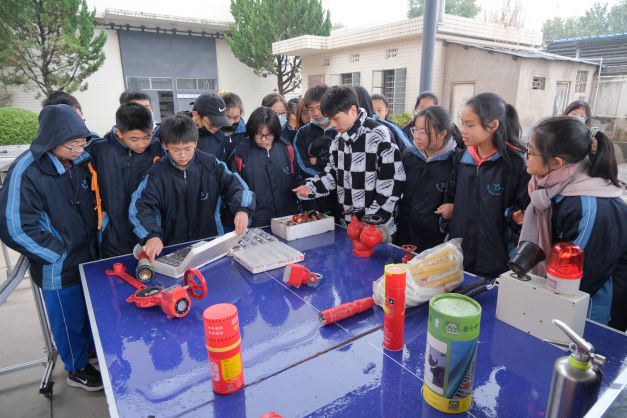 在防灾科学与安全技术研究所,硕士研究生周鹏辉为同学们展示了各类灭火仪器和楼层逃生装置;龙邈天和盛子琼讲解了火灾的多种类型以及灭火原理与方法,并演示了干粉灭火器的正确使用方式。同学们的学习热情高涨,积极提问,并亲自体验了利用干粉灭火器扑灭小型油池火的实验;何凡组织同学们观看了校园消防安全科普视频,并基于视频内容开展了消防安全知识问答竞赛,帮助同学们熟练掌握校园火灾应急处理和逃生方法。