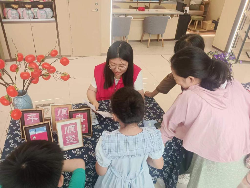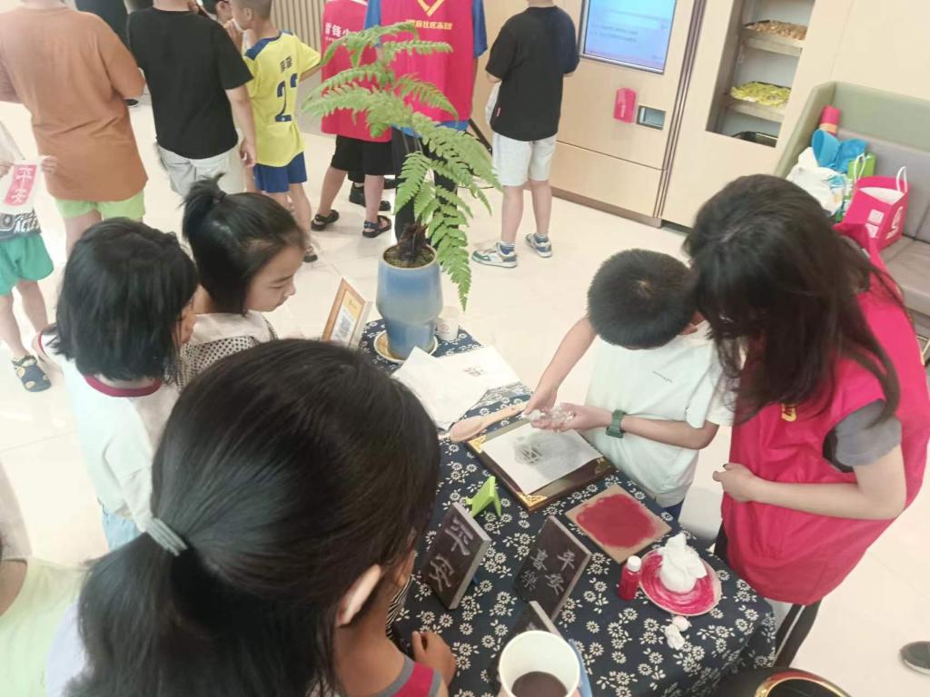 “字画拓印”最受欢迎,每次队伍都很长,小朋友们亲手制作着“平安”“喜乐”“顺遂”等字画,并开心地将其展示给爸爸妈妈看,他们乐在其中,沉浸在制作的过程,感受着非遗文化的魅力。