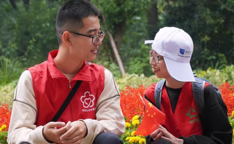 伴随着阵阵桂花香,参加活动的全体成员乘坐大巴车前往烈士公园。在活动开始前,岳麓怡智家园的工作人员根据每个残疾人士的性格特点为他们每个人分配了2-3名志愿者同学,负责陪伴他们观摩,保证他们的安全。