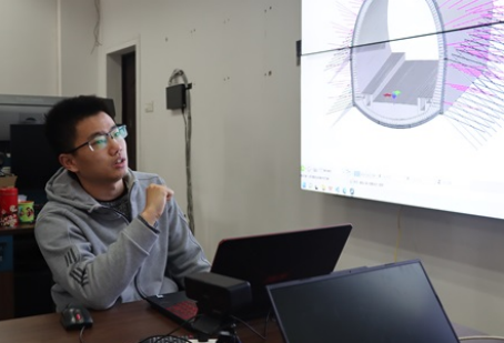 最后,为进一步了解集团铁道专业的实际工作,大家对研究生一、二支部部分课题组的相关科研成果参观学习。王卫东院长课题组的硕士党员肖淳钟同志以隧道结构为对象向大家介绍了课题组在铁路基础设施智能养维方向的研究内容,重点描述如何利用Bentley的MicroStation构建隧道数字孪生模型,扎扎实实做好铁路运营与维护,编织起经济腾飞、区域协同的坚实纽带。