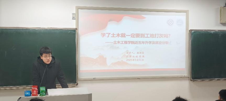 为深化专业认知教育,赋能学生成长规划,新葡的京集团35222vip土木安全大类2024级年级组于本周末在潇湘校区A101教室举行了两场专业认知交流分享会。本次交流聚焦专业分流背景下的新生发展规划需求,通过系统解读近五年毕业生发展数据,为百余名参会学子提供精准决策参考,会议由辅导员梁雨豪主持。