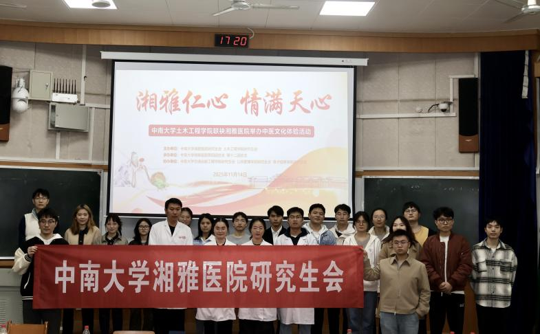 正值秋冬代序,乏寒交替之际,2025年11月14日下午,新葡的京集团35222vip研究生会、湘雅医院研究生会主办,湘雅医院第四团总支和湘雅医院第十二团总支承办,交通运输工程学院研究生会、公共管理学院研究生会和电子信息学院研究生会协办的“中医文化进校园”活动,在集团天心校区世纪楼D201顺利举行。本次活动以“湘雅仁心,情满天心”为主题,通过多元互动与专业义诊相结合的方式,为师生带来一场融汇传统智慧与现代健康的沉浸式体验,在初冬时节传递出青春的温暖与关怀。