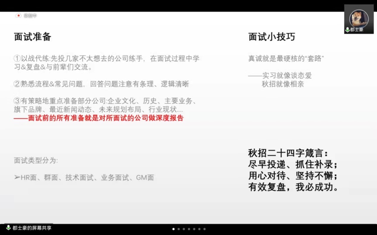 由于疫情的原因出国的经验分享比较简单,但是分享同志也抓住了主要的几个方面给想要出国的同学提供了有用的建议。就业经验分享同志将找工作的要点分为多个小点详细说明,结合自己的思考给大家带来了面试技巧等就业非常有用的干货。