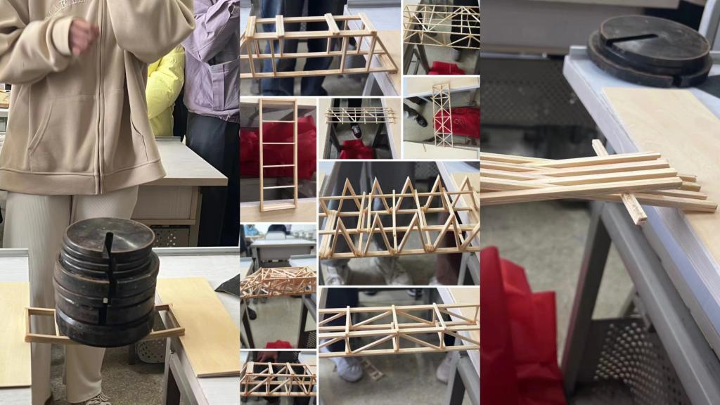 同学们利用科普所学知识进行现场设计,通过测量、切割、拼接等一系列方式,以不同的思路制作出各式各样的小木桥。经过最后的比拼与角逐,不少小木桥可承载远超自身重量千倍的荷载,脱颖而出,取得佳绩。