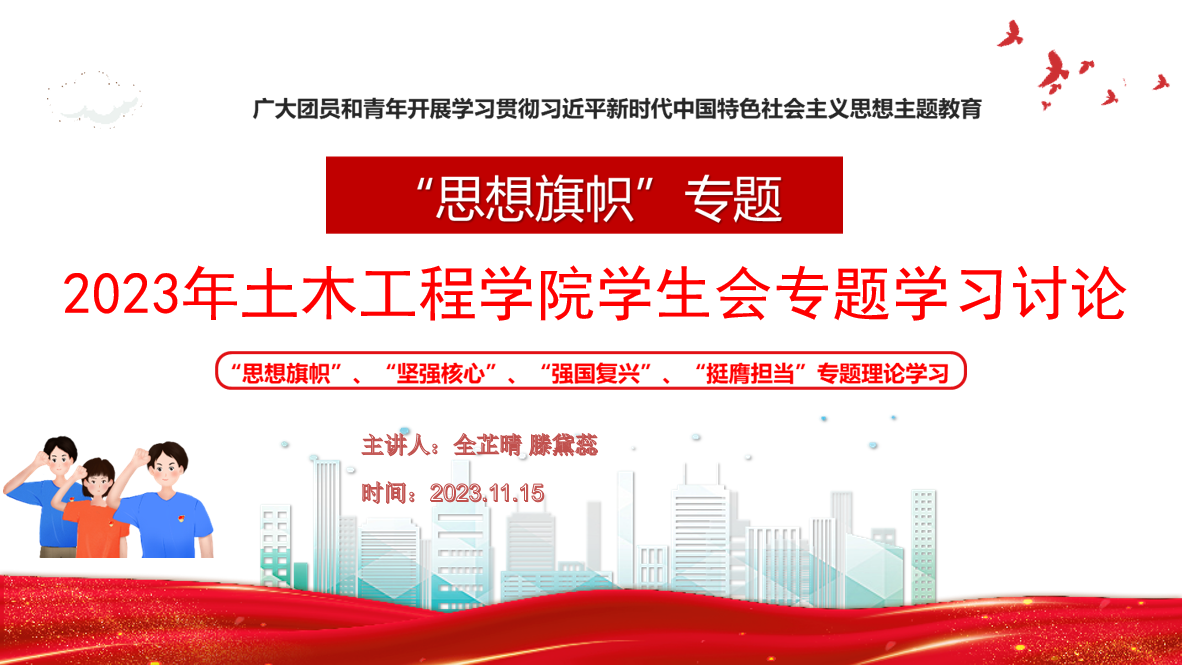 2023年11月15日晚,学生会以线上会议的形式开展思想旗帜专题学习。全芷晴、腾黛蕊同学围绕“两个结合”“六个必须坚持”“十个明确”“十四个坚持”“十三个方面成就”等组织大家展开学习与讨论,不断增进成员们对党的创新理论的政治认同、思想认同、理论认同、情感认同。