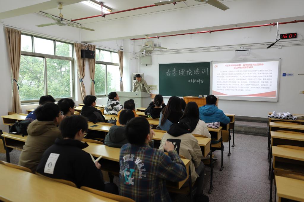第一阶段,研究生会文艺部部长王家立紧紧围绕党的二十大精神,以《学思践悟二十大,砥砺奋进新征程》为题主持研究生会成员回顾了党的二十大报告的主要内容。他表示,作为研究生会学生干部,要有青年的历史责任感和使命感,要以中华民族伟大复兴而不断奋斗。