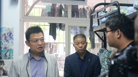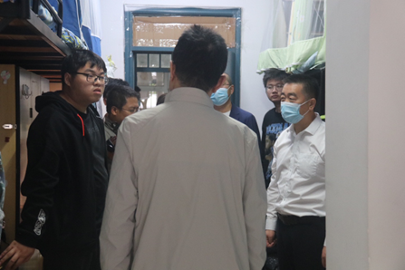 10月5日下午,李建成校长来到升华学生公寓14栋138宿舍,看望了学院王瑞之和姚珺译两名学生,深入了解了他们的生活学习情况,并给予关怀和鼓励。