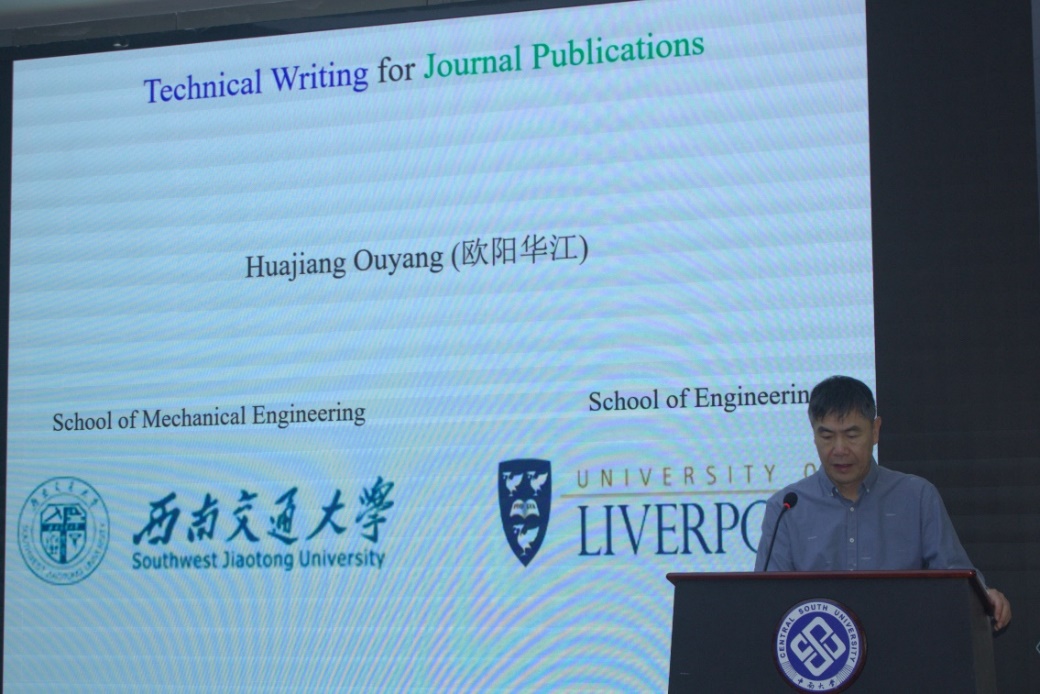 在第一场报告中,欧阳华江教授结合自己丰富的科技论文写作经验和担任Journal of Sound and Vibration (JSV)和Mechanical Systems and Signal Processing (MSSP)期刊责任编辑的经历,详细介绍了科技论文各组成部分的内容特点、形式结构和写作方法,以及稿件投稿后的处理流程,最后分享了一些普遍存在的科技论文语言问题案例。