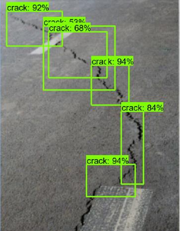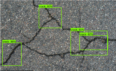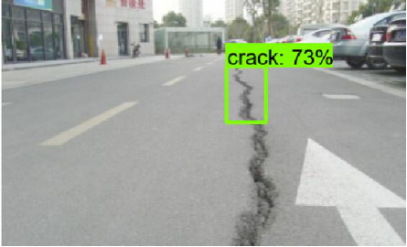 目前对于沥青路面裂缝的识别情况已经达到了预期结果。对于鼓包、泛油、车辙这些常见沥青路面病害还需完善图像数据的收集,并构建起相应的数据集,并完成测试。