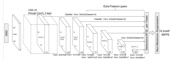 在研究的过程中,主要采用了SSD(Single Shot Mulit-box Detection)、Moblienet两种识别模型作为一体化检测网络的基底网,通过设置模型参数对数据集图像进行模型训练。