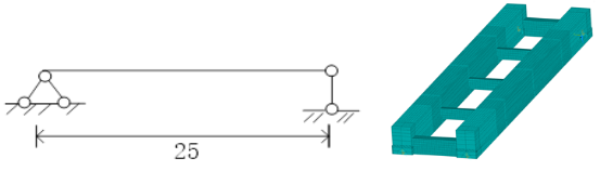 通过Ansys软件,选用BEAM188单元建立25m双梁形式的简支梁有限元模型进行分析求解。