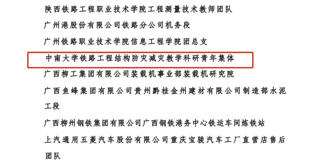 近日,全国铁路2024年度双创立功竞赛表彰名单揭晓,集团师生荣获两项国家级荣誉。其中,集团铁路工程结构防灾减灾教学科研青年集体获全国铁路向上向善好青年集体,桥梁工程博士生王文博获全国铁路向上向善好青年。